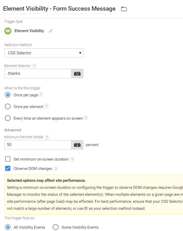 Method #4. Track Form Submissions with Element Visibility Trigger