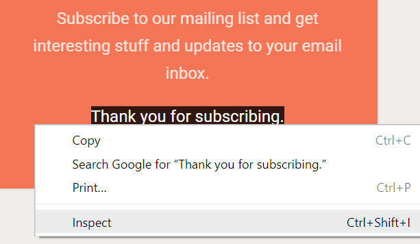 After you submit the form successfully, right-click on the success message and choose Inspect Element.