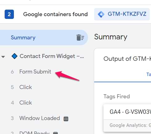 Fill in the form and submit it. After successful submission, Google Analytics Tag should fire (it will be displayed in Preview and Debug mode).