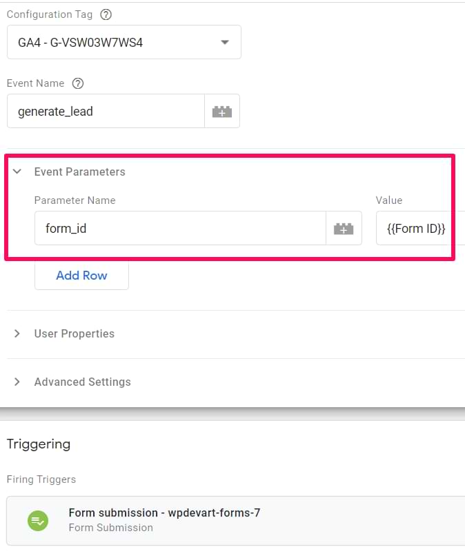 Let me quickly explain some of the choices. The reason why I used generate_lead as an event name is that it is in the list of GA4 Recommended events. But if you want, you can name it something else.