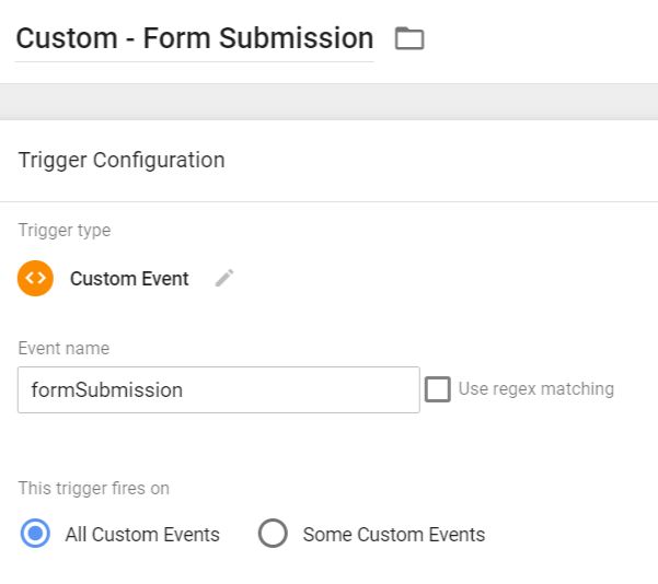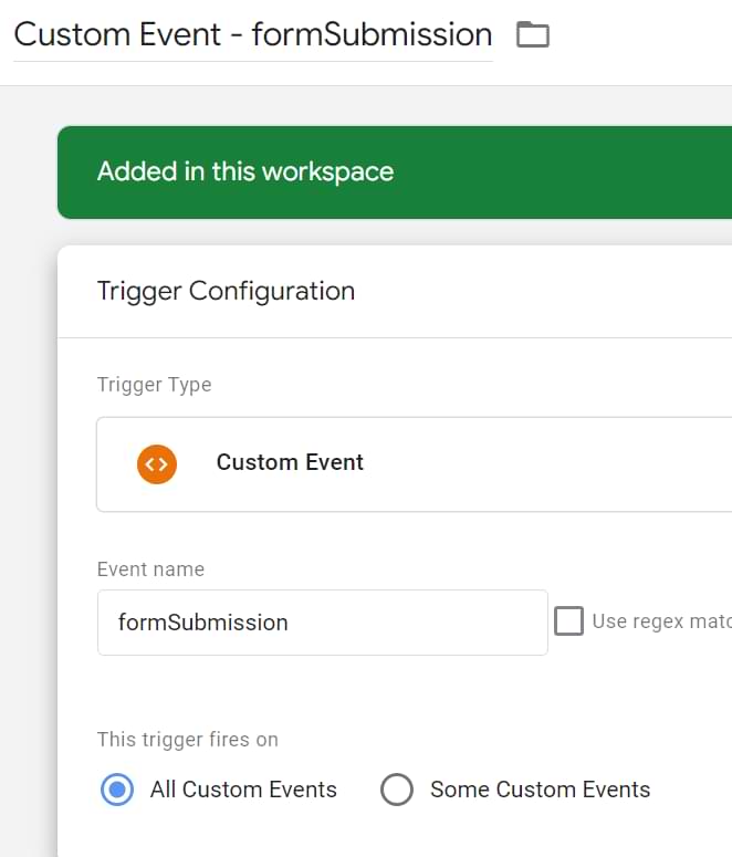 As I mentioned previously, feel free to remove the {{dlv – formID}} variable if you wish. Assign form_submission custom event trigger you have created in the previous chapter of this blog post.