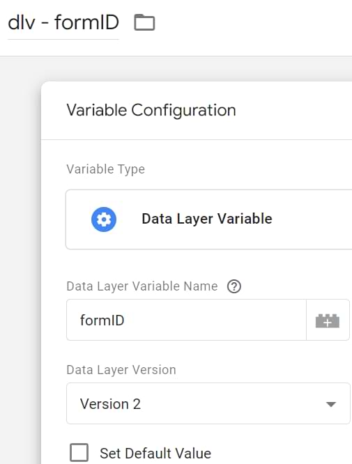 Also, create a Data Layer variable called formID if you want to pass its value to Google Analytics. This variable is optional, and you can skip it if you wish. Also, you don’t need this variable if your form refreshes the page and you use the solution described in the 1.1.1 chapter of this blog post.