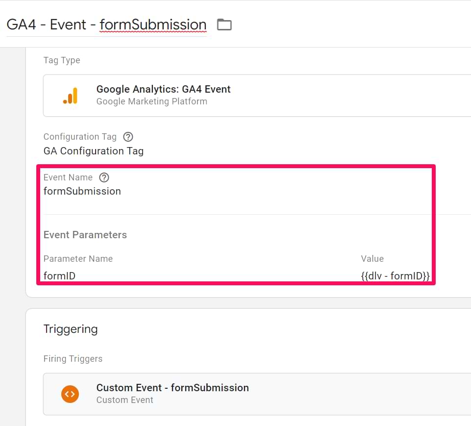 Finally, create a Google Analytics 4 Event tag that fires when a successful form submission occurs on a page.