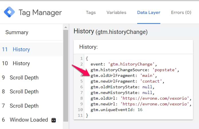 If yes, use the Data Layer variable to pull that value. Or maybe built-in variables Old History Fragment or Old History State work for you? If yes, then:
