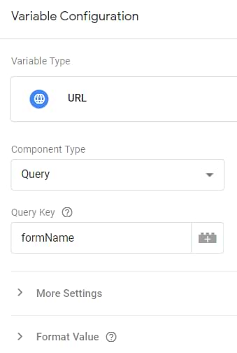 If you are using a different parameter name (instead of formName), enter it in the variable’s settings.